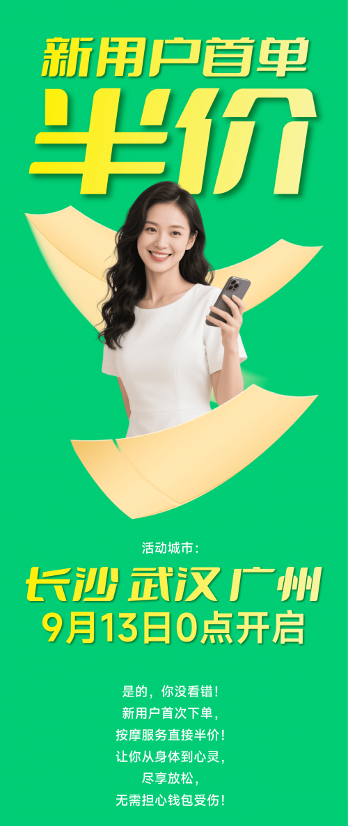 9月13号凌晨开始,新用户注册 “富足到家” 账号,即可直接享受半价按摩服务,无论是经典中式推拿、舒缓精油 SPA,还是解压肩颈护理,专业技师上门服务,省去奔波时间,在家就能享受影院级放松体验。